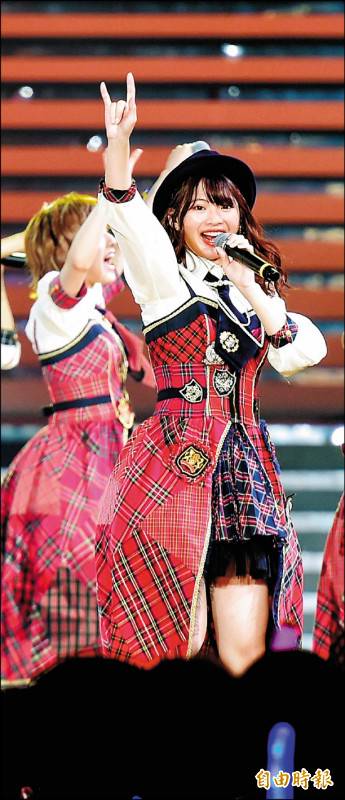 〔記者鍾志均/台北報導〕日本女團AKB48共16名成員昨首次在台北小巨蛋舉辦演唱會,吸引8000名粉絲共襄盛舉,她們以單曲《重力共鳴》熱鬧開場,邊唱邊喊「台灣,我愛你」,氣氛超嗨。輪到唯一台灣成員馬嘉伶自我介紹時,她對著粉絲深深鞠躬,並用國語說:「大家晚安,我帶著AKB的成員們來台灣了,希望大家能一起留下美好回憶。」台下歡呼聲不斷。