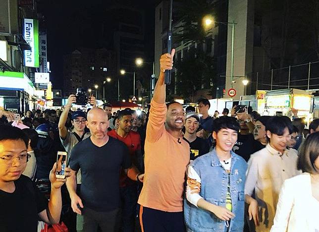 〔記者吳琬婷/台北報導〕國際名導李安前(18)晚帶著好萊塢明星威爾史密斯抵台宣傳新片《雙子殺手》,威爾明天將出席電影記者會和首映會,今天則與主持人「小8」張允曦、網紅展榮展瑞前往寧夏夜市,大啖台灣在地美食。他一下車,高大身材立刻引起民眾注意,讓幸運捕獲本尊的粉絲高興驚呼。