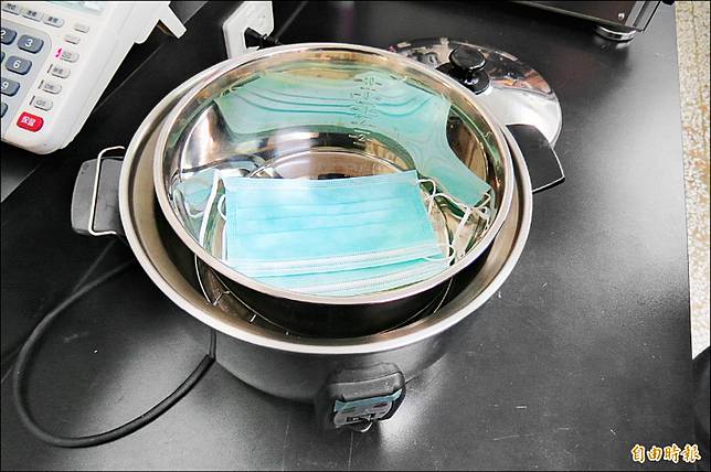 賴全裕說,沒進出過醫院或沾上太多如唾液、鼻涕、血液等體液的口罩,直接放入不加水的電鍋內鍋,內鍋下放鍋架,蓋上鍋蓋後,按下煮飯的開關直接乾蒸,開關跳起再悶置五分鐘,讓鍋內的熱空氣與口罩充份作用,即達到滅菌功效。