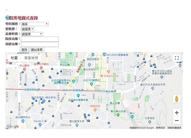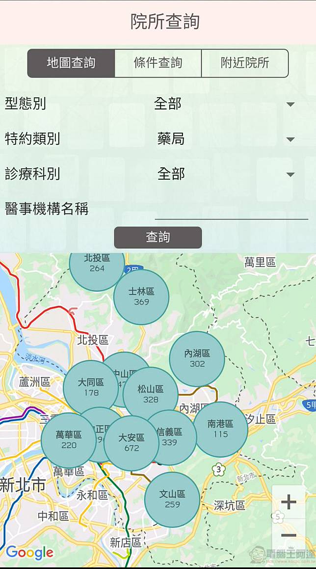 如果用健保署的「院所地圖式查詢」,就是點擊指定縣市的圖示後,再按「藥局」的特約類別進行查詢。
