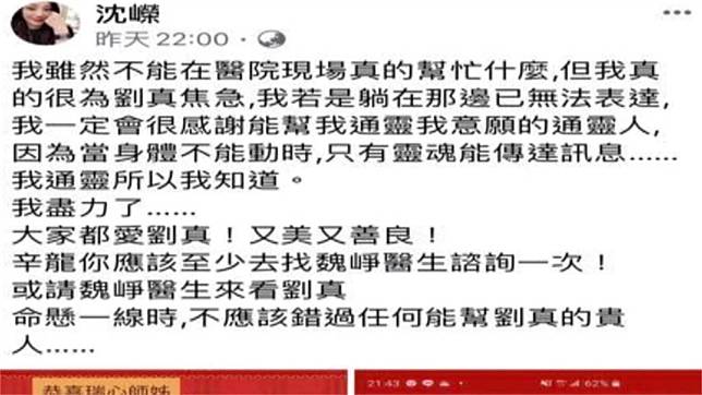 命理師沈嶸也很著急,希望辛龍至少去找心臟權威醫師魏崢諮詢一次,親友紛紛為她祈禱,希望劉真能趕快度過這一關!