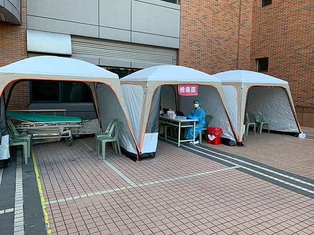 (圖由新竹馬偕醫院提供/新竹馬偕醫院增設戶外篩檢區,期將疑似武漢肺炎病例作一有效阻隔。)