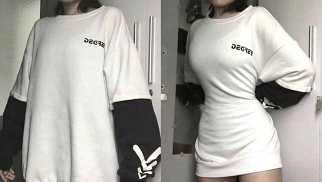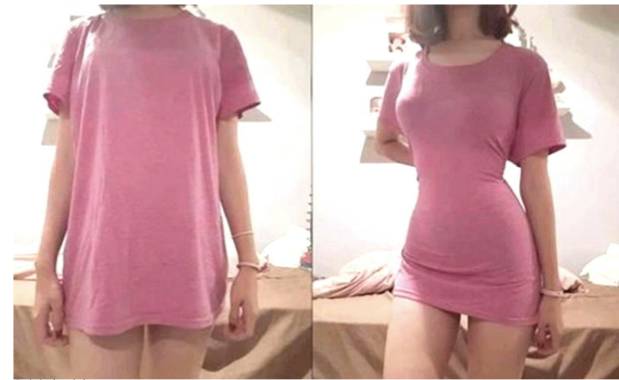 然而實際上異常寬鬆的T恤下是女生們的曼妙身形,她們將衣服收緊,只剩下凹凸有致的S曲線,而這一切都深藏在了肥大的上衣下,外人鮮少能看到。