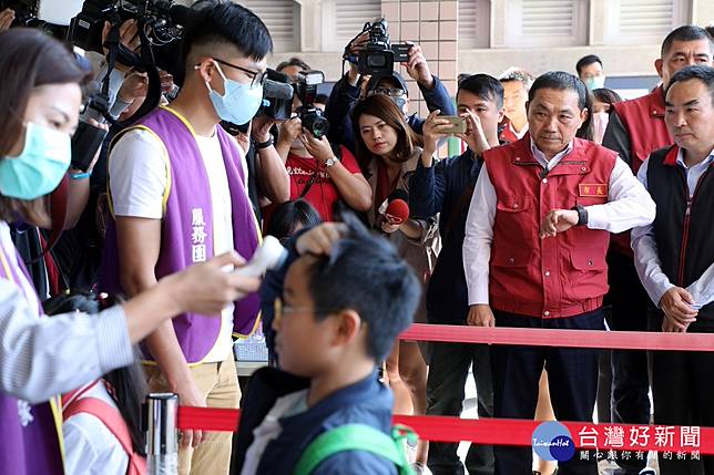此外,防疫演練及防疫措施也會拍成影片傳給家長,讓家長清楚了解防疫作業流程,一起防疫作戰。侯友宜強調「防疫只有一個敵人,就是新冠肺炎(武漢肺炎),面對共同的敵人,中央跟地方一定要齊心齊力,中央採取任何步驟,地方一定全力支援,做到位、做好補位角色,甚至更要超前部署」。