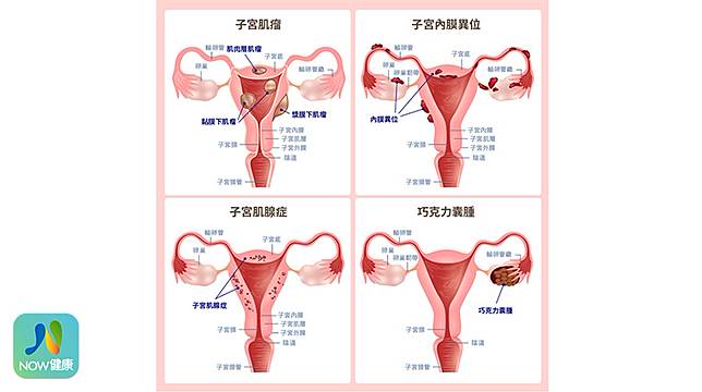 不少病患看診時,常被子宮內膜異位、子宮肌腺症、子宮肌瘤、巧克力囊腫等常見婦科疾病名詞搞得霧煞煞。郭安妮解釋,子宮內膜是指每次月經來潮所剝落下來的組織,當這些組織往外跑伴隨月經周期不斷生長,即稱為「子宮內膜異位症」。生長在子宮肌肉層稱為「子宮肌腺症」,跑到卵巢則稱為「巧克力囊腫」,少數病例甚至會跑到膀胱、直腸或肺臟等部位,進而出現血尿、咳血症狀,但多數仍以經痛為表現。此外,若著床於骨盆腔底,易與子宮後壁產生沾黏現象,則會發生性行為疼痛的情況。