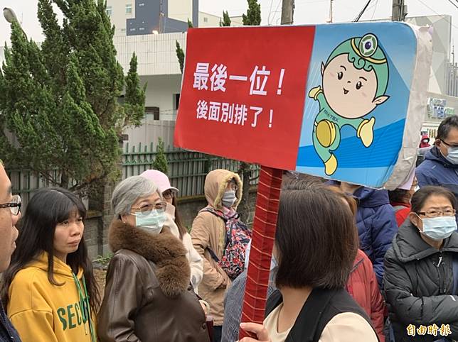 排第一位的楊姓民眾說今天凌晨1點就從台北市出發南下,清晨3點抵達廠外,另名邱姓婦人則說,她媳婦是中國湖北省人,在湖北工作,預計2月1日就要回中國上班,她從清晨由台中市出發來排隊。中國疫情嚴重,大家都不敢出門。