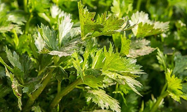 (芹菜是降血壓好幫手,芹菜葉的維生素C是莖的1倍、葉酸則是芹菜莖的10倍,芹菜連同葉一起吃,好處更多。圖片來源:Pixabay)