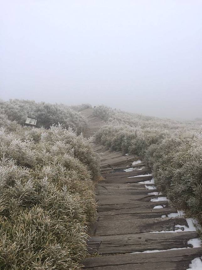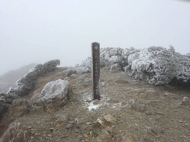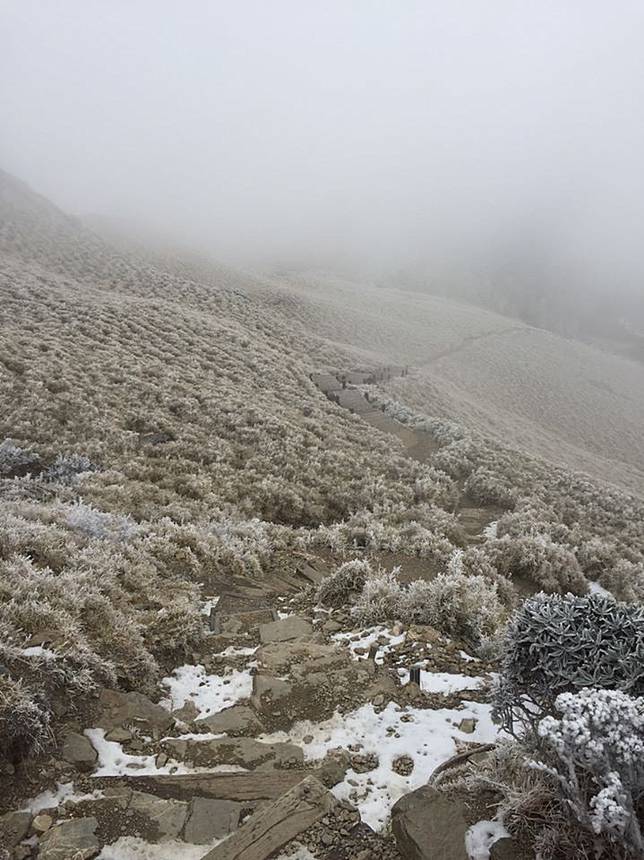 氣象局表示,今天北部3000公尺以上高山路段有結霜發生的機率,前往山區活動、行車請多留意安全,從氣象局資料來看,今天玉山低溫僅-5.7度、雪山圈谷-4.9度、桃山與奇萊稜線-2.8度、合歡山頂-2.6度。