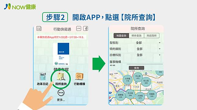 步驟2:進入「健保快易通APP」點選「院所搜查」。