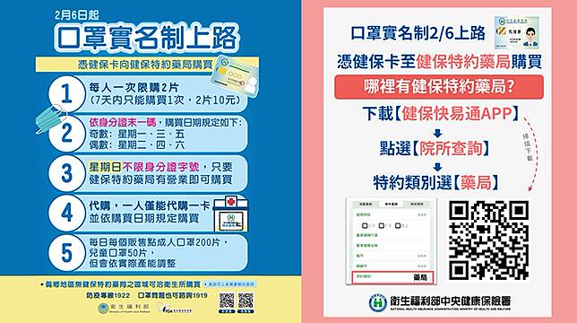 【NOW健康 陳敬哲/台北報導】民眾面對武漢肺炎(2019新型冠狀病毒)相當恐懼,原本4大超商配發1人限購3片口罩,引發搶購導致真正需要者無口罩可用。因此中央疫情流行指揮中心昨(4)日決定,超商口罩今(4)日停售,2月6日起全面實名制銷售,買口罩必須前往藥局,刷健保卡登記,1人1周限購2片,1片售價5元。