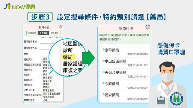 步驟3:設定搜尋條件,特約類別請選「藥局」。