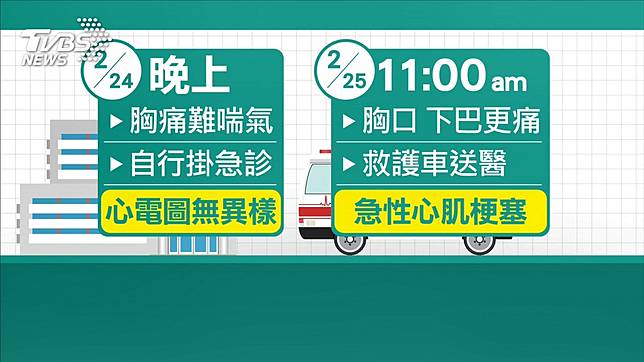 當事人康先生:「胸痛,然後很難過,一直冒冷汗。」