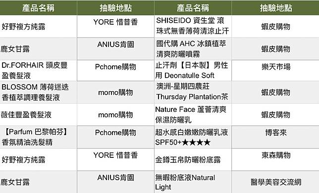 違規的產品類別中,特定用途化粧品有8件不合格,像是夏天常用的防曬乳、止汗劑都榜上有名,例如蝦皮網購的「SHISEIDO資生堂滾珠式無香薄荷清涼止汗劑」,產品被驗出含有止汗制臭成分,但未經核准即輸入販售,且外包裝也沒有中文標示,並沒有按照程序進行檢驗,被裁處2萬元後要求廠商回收下架。