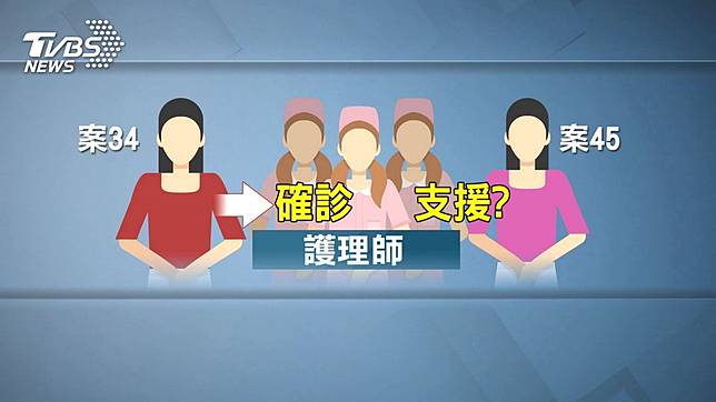 案45是案34確診前,同房不同室的住院病人,而確診的3名護理師,都沒有照顧過案45,但有沒有可能,曾幫忙支援照顧,時間過太久難追溯,指揮中心不能排除,而且進一步還有新發現,之前的案42也就是確診的陪病家屬,曾和案45在同個檢查室,但兩人出入的時間點不同,而且當時案45也無相關症狀。