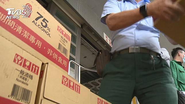 儘管全聯跟超商都買的到,但藥局卻大缺貨,藥師全聯會才公告,因為台酒作業延遲一周,所以調整配送方式,而在高雄郵政總局,在5日開始送件,把上千箱的酒精開始分到,各個配送車上。