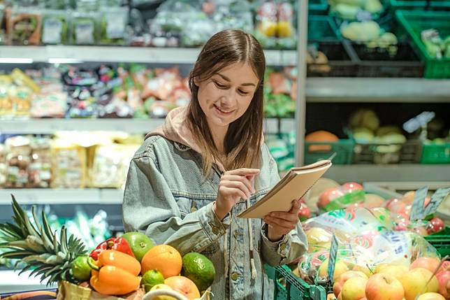 在購買密封完整包裝食品時,應先確認包裝上是否有明確標示內容物名稱、有效日期、廠商名稱、地址、電話,以及原產地、營養標示等資訊。其中,營養標示還須標示出熱量及營養素含量,內容物要從含量高的成分依序列出,民眾可從標示順序判斷出內容物含量的多寡。