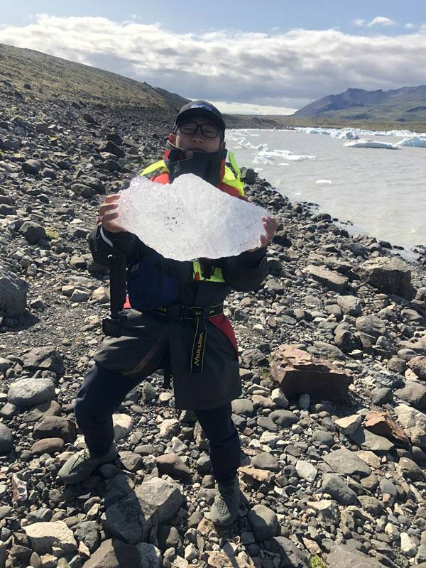 徒手搬起一塊巨冰,也是很難得體驗。(圖/蔡昌憲提供)