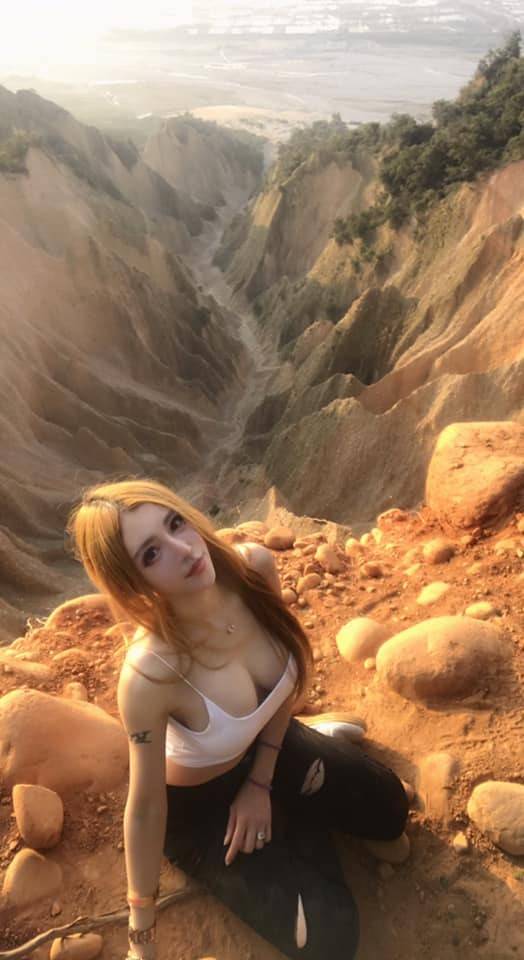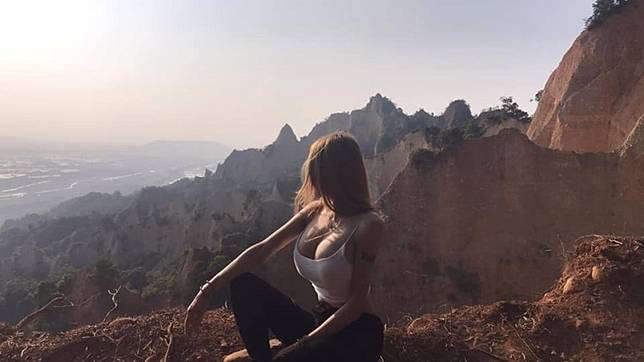 擁有逾15萬人追蹤的網紅Viki Chen,姣好臉蛋加上傲人身材,臉書照片都十分吸睛,近期她再PO出至火炎山登山照,只見她穿著白色小背心在斷崖處取景,爆乳、美背、纖腰全都露,配上後方火炎山峽谷壯闊景緻,讓網友直呼「美景配上女神」,更有人「眼睛不知道該看哪。」