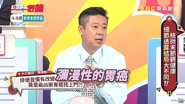 外科醫師陳榮堅日前在《醫師好辣》節目中分享遇過的病例,一名40多歲男患者發現自己排便習慣改變,前往醫院做大腸鏡檢查後卻沒有發現任何異狀,不過仍感覺肚子不舒服,加上身體出現疲勞情形,懷疑是肝臟出問題,隨即又回醫院做超音波,但依舊沒有問題。陳醫師隨後為病患安排抽血檢驗後發現,病人的血色素只有11偏低。