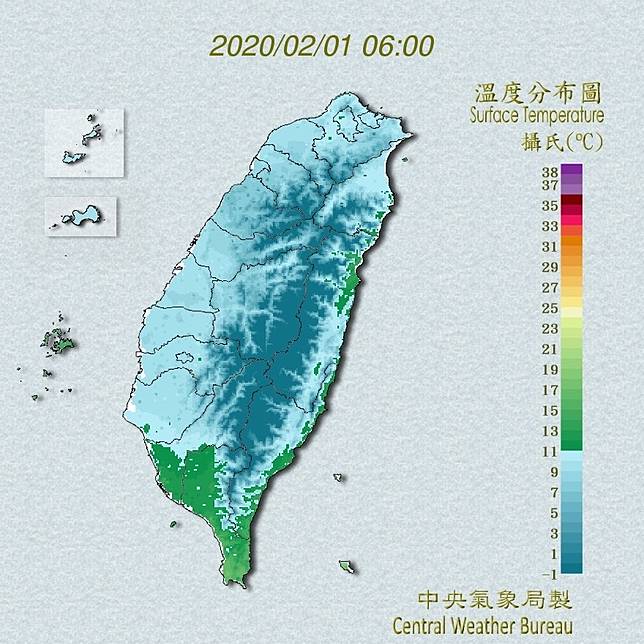 ▼今晨由於寒流再加上輻射冷作用,全台依舊冷颼颼。(圖/翻攝自中央氣象局)