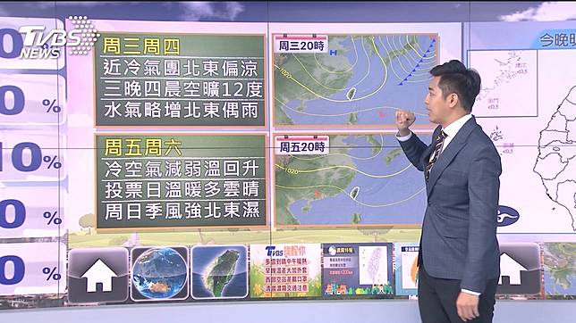不過週五回暖,週六投票日,多雲到晴,周日再變天。