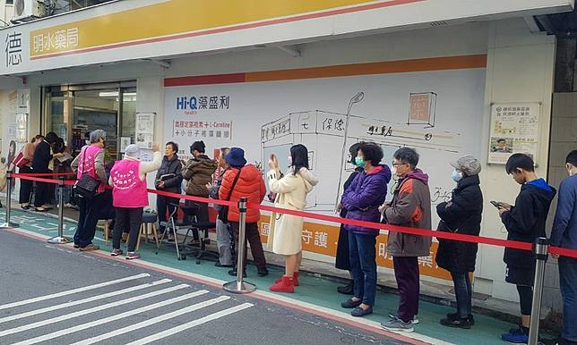(口罩實名制,藥局大排長龍。 圖片來源:台北市政府衛生局)
