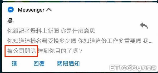 7日《ETtoday新聞雲》獨家報導《櫃姐搶口罩財!櫃位面交講密語「來拿東西的」一盒價爆漲5倍》,沒想到就在新聞報導之後,這名吳姓櫃姐竟然私訊黃姓網友,同時質問他為何要向記者爆料說:「你跟記者爆料上新聞,你是什麼意思,你知道這樣名譽受損多少嗎?你知道這份工作多重要,我被公司開除後,達到你的目的了嗎」?同時也強調「我好心讓你面交」。對此黃姓網友只簡單回一句:「這也是事實」之後,對方也沒有再私訊,同時也關閉了自己臉書。