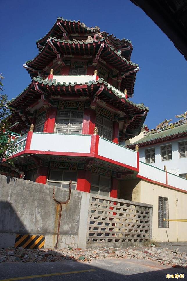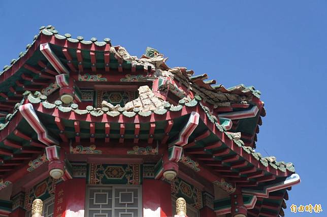 〔記者劉禹慶/澎湖報導〕澎湖4大古廟之一的關帝廟,今日清晨突然傳出左側鐘樓屋瓦掉落,鄰近居民都聽到巨大聲響,緊連的文林街散落一地碎石,馬公市公所民政課長葉慶宏剛好騎車經過,立即通知朝陽里長顏明清會同當地管區,現場拉起封鎖線維護安全。