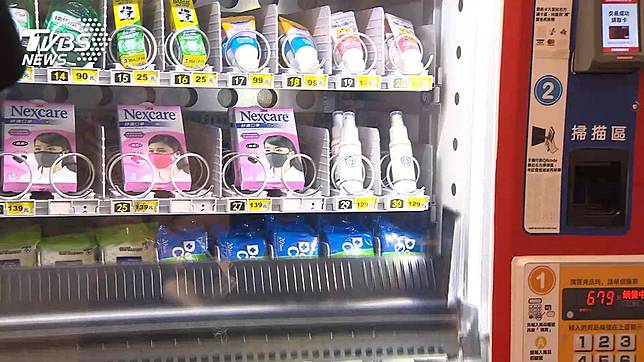 防疫大作戰,現在連超商販賣機也加入,除了原本的零食、飲料,現在還看得到隨身抗菌噴霧、茶樹精油濕紙巾和口罩,防疫三寶校園隨手就能買到,學生不用搶購也能防疫。