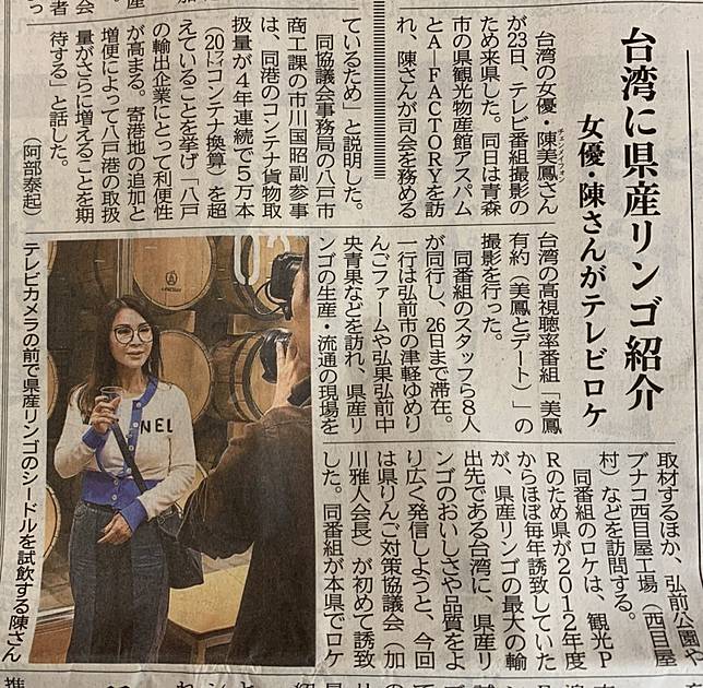 陳美鳳因促進青森地區觀光接受縣長頒獎,還躍上當地報紙版面。(圖/民視提供)