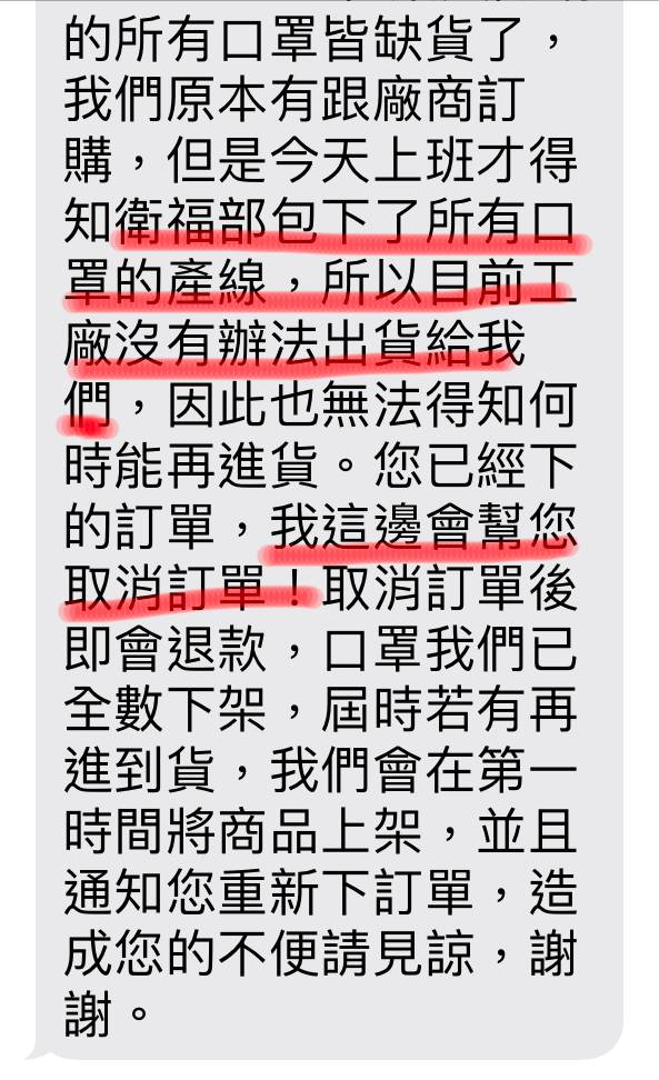 不過經濟部全數徵用口罩,雖然看起來好像紓解了「口罩之亂」,但這些措施也讓原本訂購口罩的消費者「買不到口罩」,不是延後出貨,就是訂單被取消,使得已經有訂購的消費者反而買不到口罩。