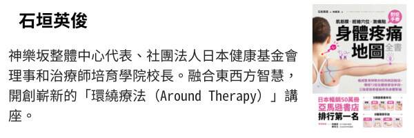 ※ 內容授權自《肌筋膜‧經絡穴位‧激痛點,對症手療身體疼痛地圖全書》,作者為石垣英俊,方言文化出版。