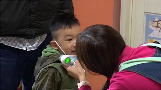 小朋友戴著口罩,一早蹦蹦跳跳來上學,老師一個個都得先量體溫,看一下喉嚨有沒有發炎感冒症狀,就怕有個萬一。