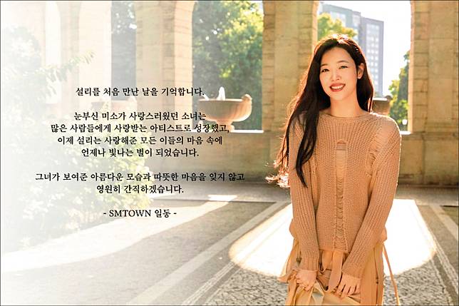 〔記者鍾志均/綜合報導〕韓團f(x)前團員雪莉14日逝世,昨在首爾的塞布蘭斯醫院葬儀場舉行出殯儀式,以非公開形式進行。f(x)前成員宋茜、Amber也放下演藝工作,分別自中國與美國赴韓送她最後一程。據報導,該團另2位成員Krystal和Luna前晚也到雪莉靈堂弔唁,兩人刻意選擇深夜前往,避開媒體,Krystal哭到雙眼紅腫,粉絲不捨該團五人以這種形式合體,令不少人淚崩。