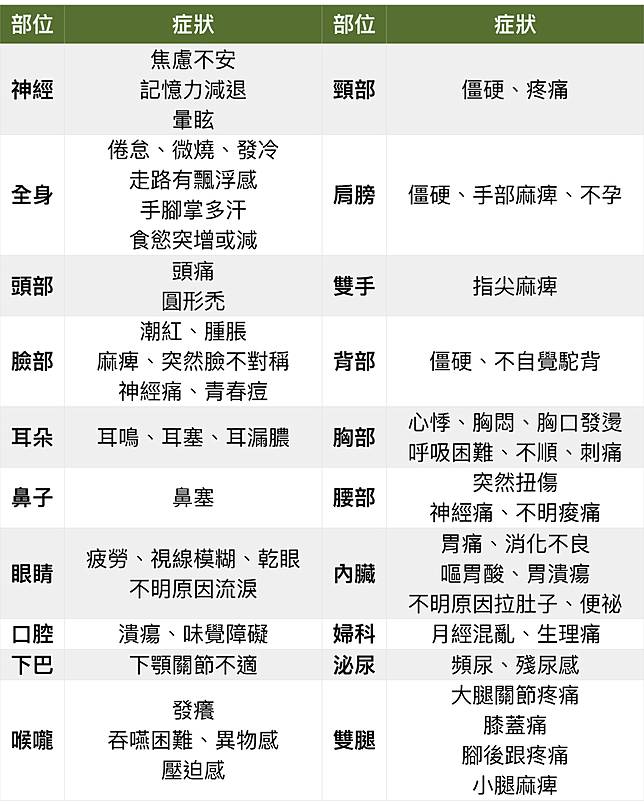 其他可能找錯醫生的病例,像是心悸胸悶,大多數人會找心臟科;不明原因視線模糊、眼睛疲勞,想到就是眼科;耳鳴、耳塞是耳鼻喉科;一般人怎麼會想是頸椎的問題?如果遇到醫生找不到病因,又反覆出現症狀,做檢查都正常,有醫生看到沒有醫生時,你要考慮是不是頸椎出問題了。