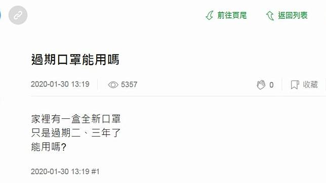 網友在論壇《mobile01》發文詢問「過期口罩能用嗎?」,並說「家裡有一盒全新口罩,只是過期二、三年了,能用嗎?」引發熱議,口罩過期就沒有防護力了嗎?看來不少人都有相同疑惑。