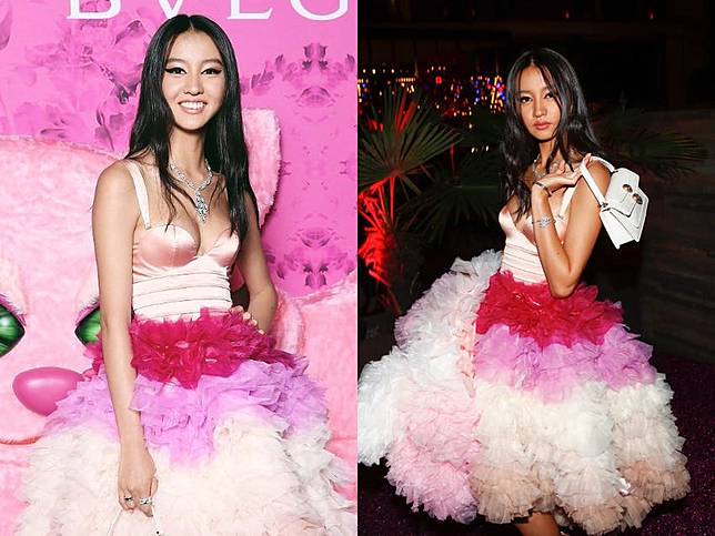 木村光希似乎跟Tomo Koizumi這個品牌特別八字不合,出席巴黎及東京的時裝周,服裝打扮都引來網友相當兩極的評論,上個月木村出席Tomo Koizumi在寶格麗的活動時,木村穿著以下這身粉色花苞裙搭配緊身馬甲亮相,這個造型一出,不少網友就表示:「實在是太超齡了!」、「完全撐不起來!」等評論,認為木村光希太年輕,這身打扮太過於老氣了,還有那個貓眼妝….乍看以為靜香姊來了~。