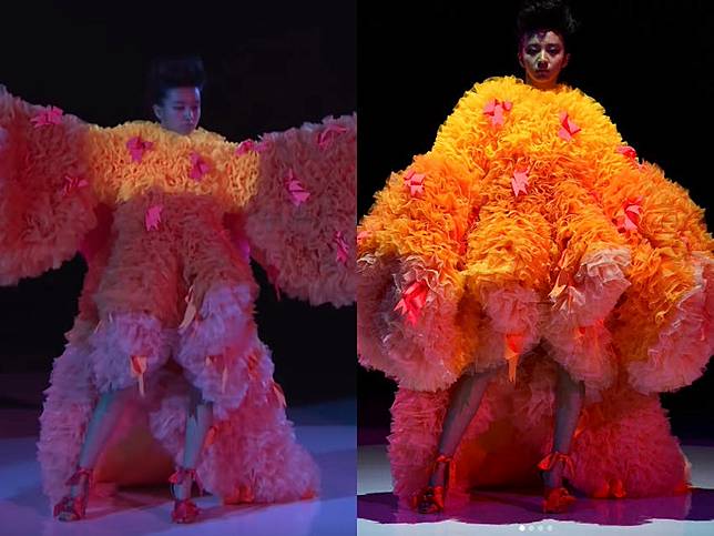 之後出席Tomo Koizumi東京時裝周,身高175的木村光希梳起公雞頭,腳踩橘色螢光鞋,與漸層變色服裝相呼應,雖然走上T台充滿自信,走秀穿搭卻又被批評超像一隻炸雞,網友們紛紛搖頭說:「看到就餓了!」、「時尚真的太難懂!」也蠻像夜市賣的、一壓下去就會ㄍㄞㄍㄞ叫的尖叫雞。