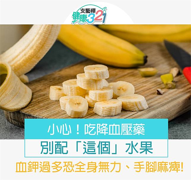 為什麼呢?根據書田診所家醫科的醫師何一成表示,通常降血壓的藥物都含有「保鉀型的利尿劑」,就表示這些藥物會把鉀離子保留在體內、不會隨著尿液排除,如果在這時候又吃了富含鉀離子的食物─香蕉,就會導致體內血鉀堆積、鉀過多,就容易出現「全身無力、手腳麻痺」的症狀!