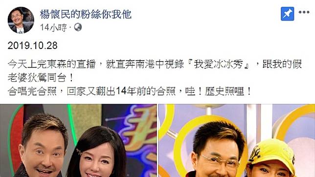 昨天狄鶯和楊懷民合體現身錄《我愛冰冰秀》,期間2人同台合唱又留下合照,楊懷民還加碼曝光14年前2人的合照,只見2人無論臉蛋和身型幾乎都沒變,超凍齡的模樣讓不少網友驚呼「都保養得很好」、「能再一起出來演歌仔戲嗎」、「2位都沒變耶」、「都更年輕」。