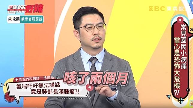 胸腔內科醫師徐培菘日前在《醫師好辣》節目中指出,連續咳嗽超過3週有可能是慢性咳嗽,但誘發原因大部分為氣喘、鼻涕倒流或胃食道逆流,感冒治癒後僅剩咳嗽沒好頗為常見,但有時候卻是身體出現問題的警訊。他透露曾有一名40歲女子前來看診,自述過去2個月以來不停咳嗽,起初以為是抽菸所致不以為意,直到後來連走路、爬樓梯都氣喘如牛,才驚覺不對勁趕緊就醫。