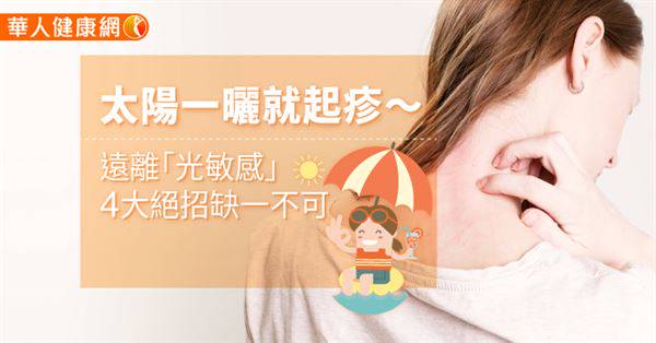 「好煩啊~每次夏天一曬到太陽,手臂和脖子就會發癢、冒疹子,常常要過好幾天才能消退!」如果您也有類似的困擾,而且就算塗了防曬乳,還是無法完全避免,小心很可能是常被形容為「見光死」的光敏感症狀。對此,中醫師提供4個保健方法,幫助遠離光敏感的煩惱。
