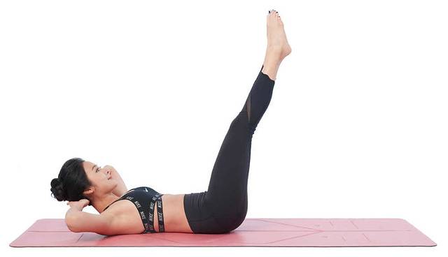 基本動作「仰臥抬腳」的變化版,可以有效加強腹斜肌的力量。