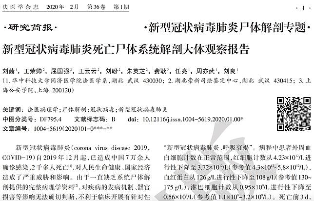 新型冠状病毒肺炎死亡尸体系统解剖大体观察报告
