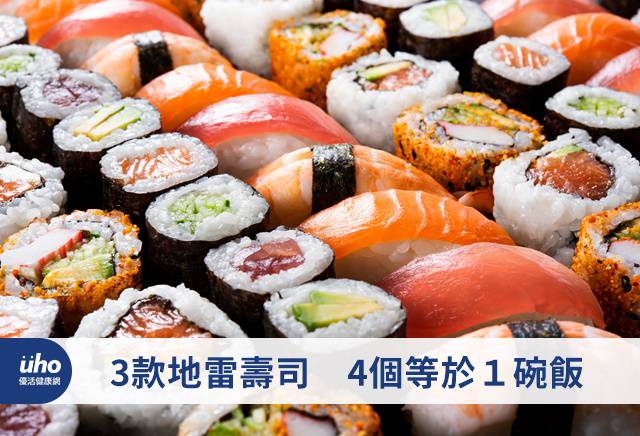認識以上的地雷區後,營養師建議,減少壽司飯澱粉類的攝取,選擇原型的海鮮食材,像是鮪魚、鮭魚、蝦子、花枝、干貝等生魚片,不僅含有豐富優良蛋白質,還有平常較少攝取到的多元不飽和脂肪酸omega-3,至於油脂較高的鮭魚肚,因鮭魚中的魚油可以幫助降低身體的發炎反應,如果要吃的話可點一盤解饞,就不會有熱量攝取過多的問題。