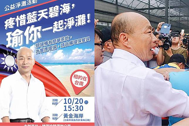 韓國瑜想淨灘卻被捷足先登 遭疑「黑韓」志工喊冤