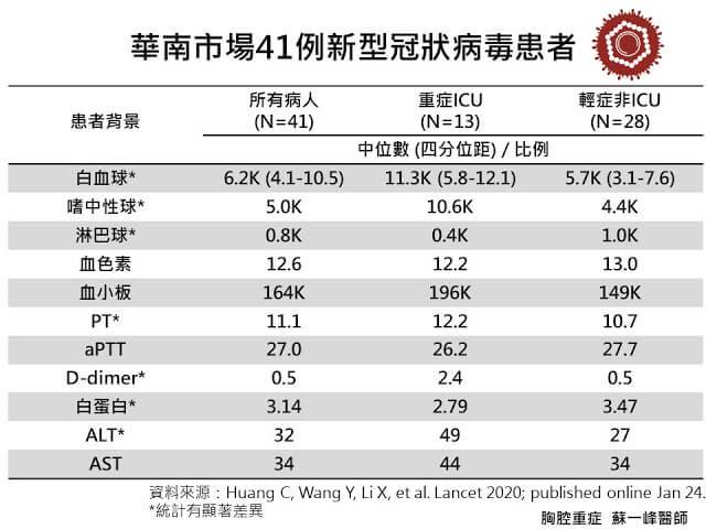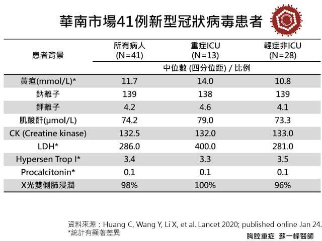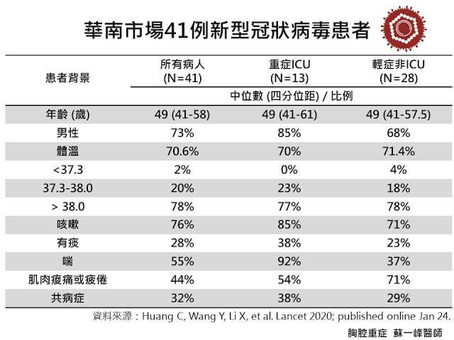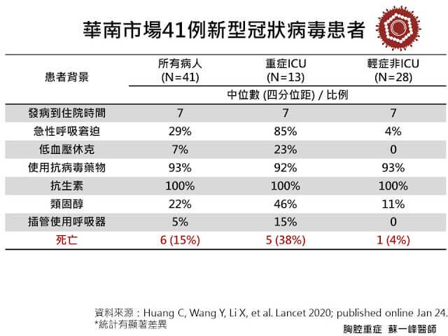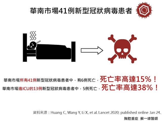 根據國名知名期刊Lancet的研究發現,最先罹患新型冠狀病毒的41例個案中,居然有6例死亡,死亡率高達15%!!