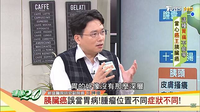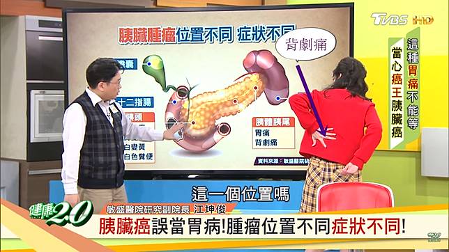 江坤俊指出,胰臟很難被摸到,因為它位在肚臍跟胸骨間、胃的後面,只是胰臟的悶痛,會讓人感覺比較深層,而胃痛沒有那麼深層,但民眾還是很難分辨,只知道上腹不舒服而已。