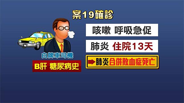 像是案19的白牌車司機,就曾患有B肝和糖尿病,當時因咳嗽肺炎住院13天後,仍因為肺炎合併敗血症死亡。