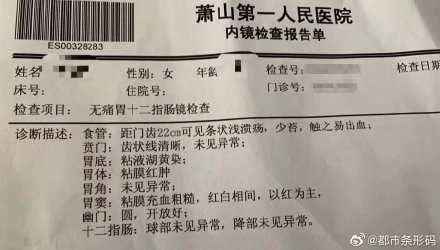 經過胃鏡檢查,醫師發現張女食道22公分處有一塊潰瘍,隨後並替她進行治療,也告誡若吃太燙的東西,又吃得太快,容易損害食道和消化器官,且若長期為之還會致癌。張女也表示之後會更注意飲食習慣,「沒想到吃火鍋還能吃『吐血』,下次再也不敢狼吞虎嚥了。」